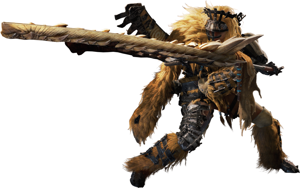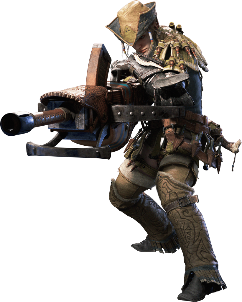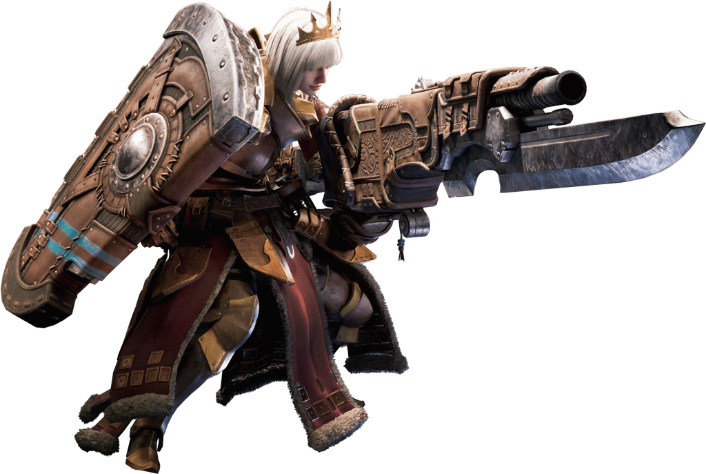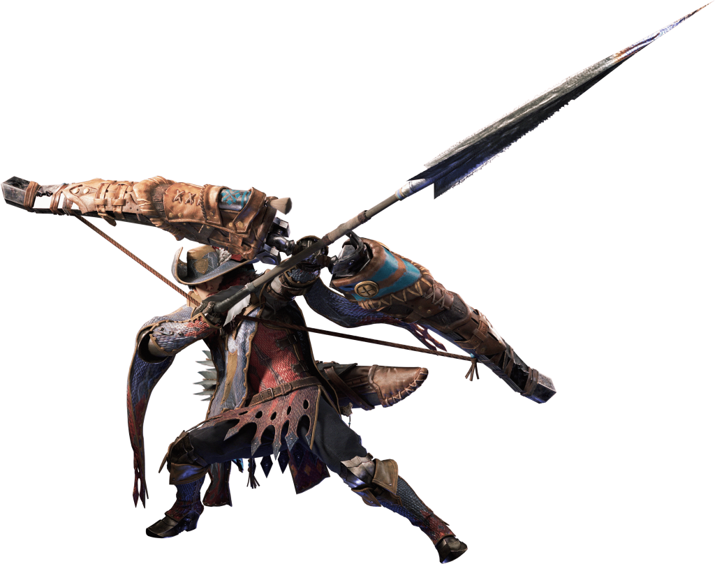 ・ガンランス:長いリーチの突きと砲撃を併せ持つ武器。
